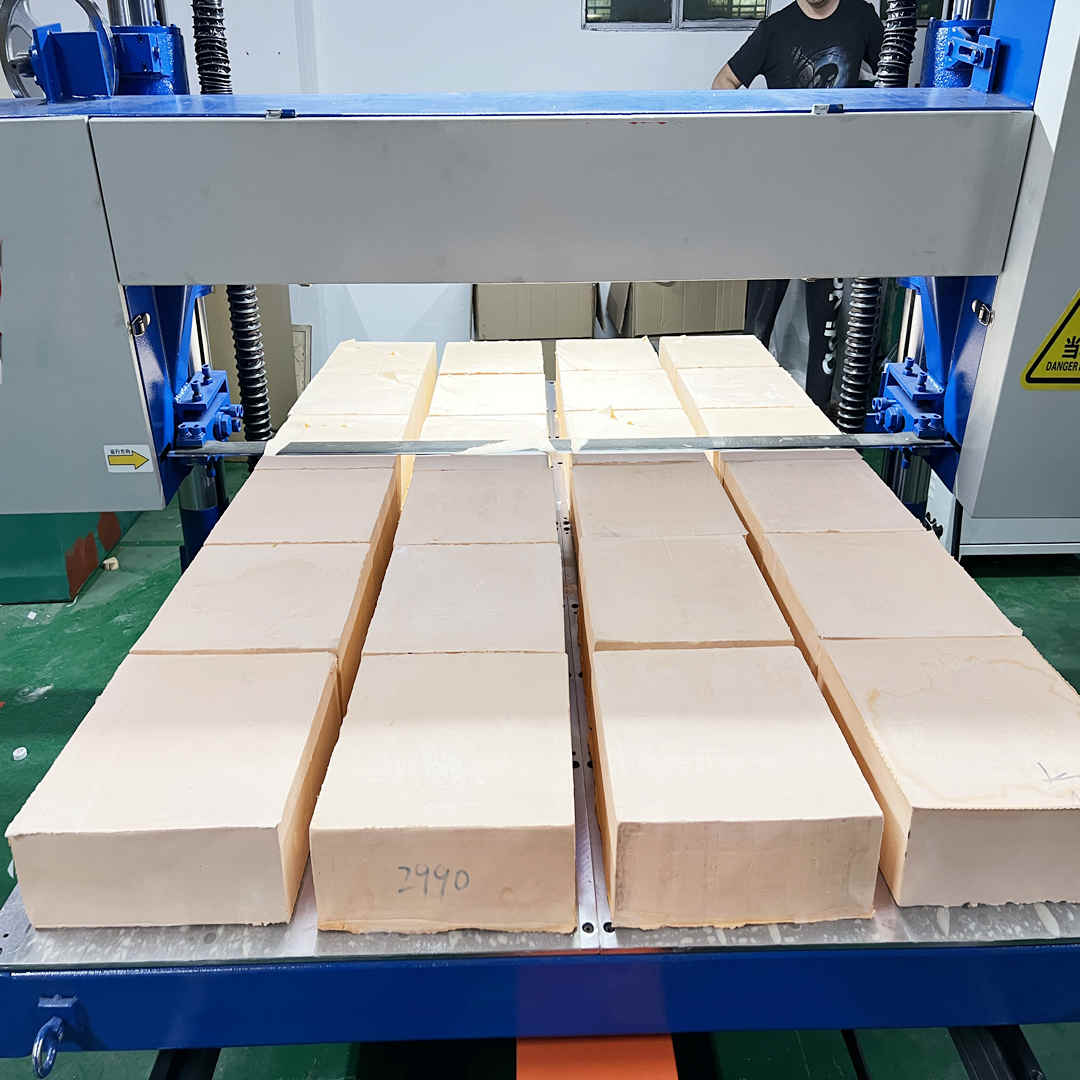 The machine mainly cutting the block foam into slices. It' s adopt fully automatic digital control, setting the number by control box as need cutting thickness and foam density. The workable adopt stainless steel plate runs and with vacuum, it can adding to pressure roller, and in order to prevent cutting foam removing, easy to operate, cutting precision.